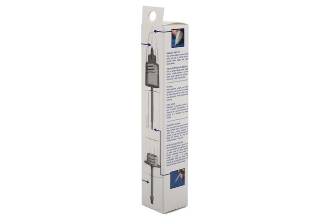 Four-in-one applicator with a piston style pen-tip for small fixes and a brush applicator for larger scratches and chips